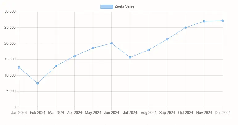 Andy An ยังได้ประกาศเป้าหมายการส่งมอบรถยนต์ของ Zeekr ในปี 2025 ด้วย โดยตั้งเป้าส่งมอบที่ 320,000 คัน เพิ่มขึ้นเกือบ 100,000 คัน เมื่อเทียบกับยอดการส่งมอบในปี 2024 ที่ทำได้ 222,123 คัน