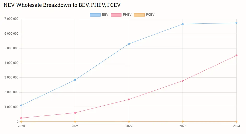 รถยนต์แบบ PHEV ได้รับความนิยมอย่างแพร่หลายในประเทศจีน ในปี 2024 ตั้งแต่เดือนมกราคม – พฤศจิกายนพบว่า รถยนต์ไฟฟ้าล้วน BEV มียอดขาย 6,741,000 คัน เติบโตขึ้น 15.6% ส่วนรถ PHEV มียอดขาย 4,515,000 คัน เติบโตขึ้นถึง 86.4%